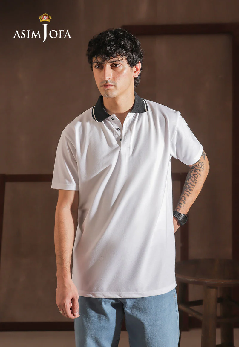 Make a sharp statement in this white polo with a contrasting black collar. Clean aesthetic and bold contrast reflect a mindset that’s crisp, clear, and always composed—ideal for those who lead with quiet authority.