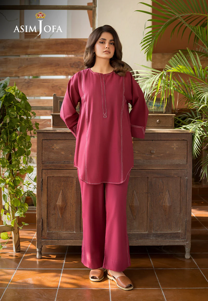Make a statement with this striking maroon ensemble that redefines a solid look. The shirt is beautifully detailed with refined stitching patterns along the neckline, front and sleeves, adding a touch of sophistication. Paired with stylishly tailored trousers, this outfit is the perfect blend of charm and versatility.