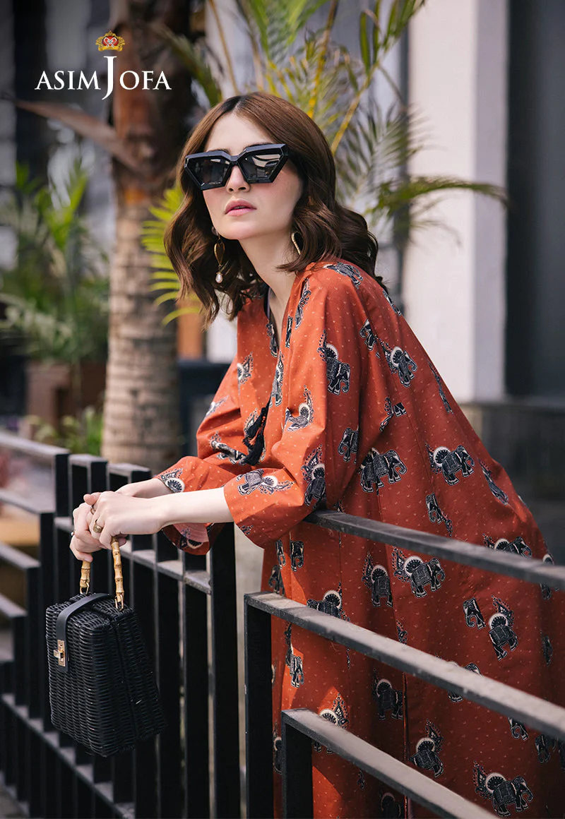 The long, loose-fitting shirt in a printed burnt-sienna is perfect for casual days while the captivating elephant motifs add a pop of modern charm with matching wide-leg trouser that can turn heads all around you.