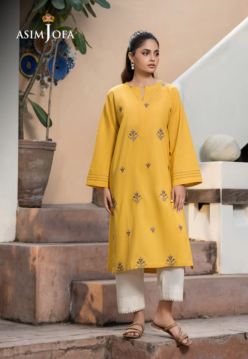 Radiate the vibrant charm of a marigold in this yellow shirt, adorned with exquisite floral embroidery gracefully scattered across the fabric, exuding warmth and timeless elegance.