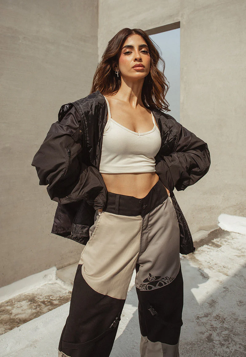 Make a lasting impression with these 3-tone cotton twill pants, a luxurious blend of structure and sophistication. Featuring iconic screen-printed branding, elevating casual luxury for a style icon. Non-functional belts add a modern edge, elevating these pants into a must-have piece for the trendsetters who demand distinction in every detail.